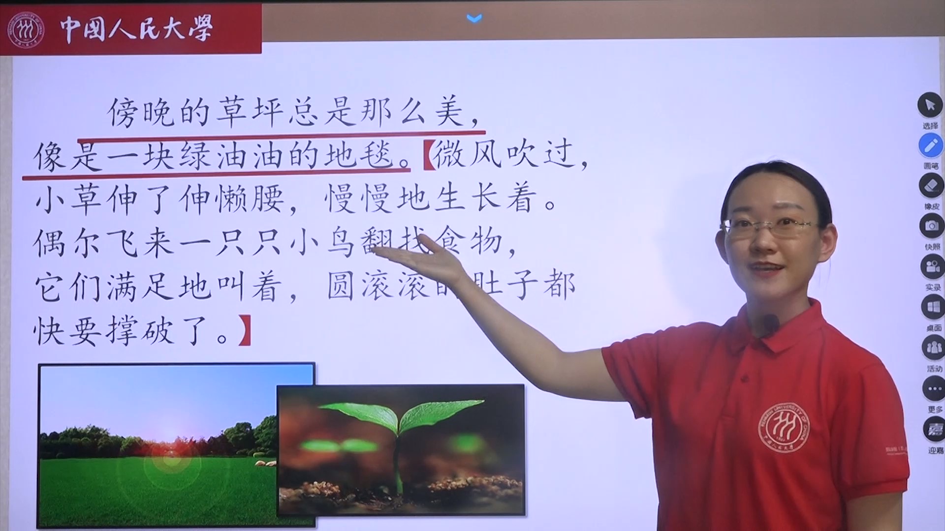 自开赛以来,参赛团队在章欣老师的引领下积极拓宽教学思路,力求创新教学方法,设计完成了作品《跟着诗人游四季》高级写作拓展课程,课程全系列以四季变换为主线,从应景古诗切入,讲解写作技巧及修辞手法。同时,针对留学生因文化差异而较难理解的内容,该课程做适当讲解,使学生在情景中习得写景的技巧,感知中华文化的魅力。团队结合参赛要求和自身特点,将汉语教学和智慧课堂系统深度融合,着力展现人大汉硕学生教学水平与风采。团队作品因创意新、教态好、讲解深入浅出、制作精良,且具备较强的趣味性及启发性,获得了评委老师的一致好评——“充分体现了微课‘小而精’的特色,实属高级汉语精品课程”。