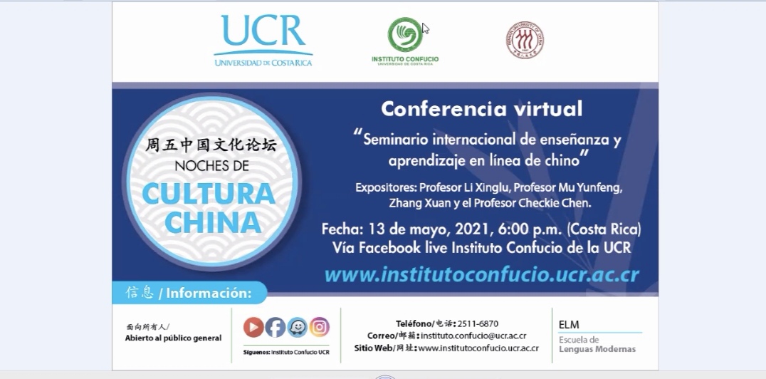 北京时间5月14日上午8点(哥斯达黎加时间5月13日下午6点),片库网 —哥斯达黎加大学“线上国际中文教学研讨会”成功举行。会议邀请来自两所大学的教授、老师及学生代表做主题发言,参会嘉宾围绕“后疫情时代的线上国际中文教学”这一主题展开了深入探讨。会议由哥斯达黎加大学孔子学院外方院长周国华先生和中方院长李华女士主持,哥斯达黎加大学现代语言学院院长Dr. Allen Quesada作为特邀嘉宾出席,片库网 蔡永强教授作为会议召集人和嘉宾出席会议。会议同时得到了我校孔子学院办公室的大力支持,孔院相关负责人、学院多名师生旁听了会议。本次会议在ZOOM平台上进行,并通过Facebook Live进行全程直播。