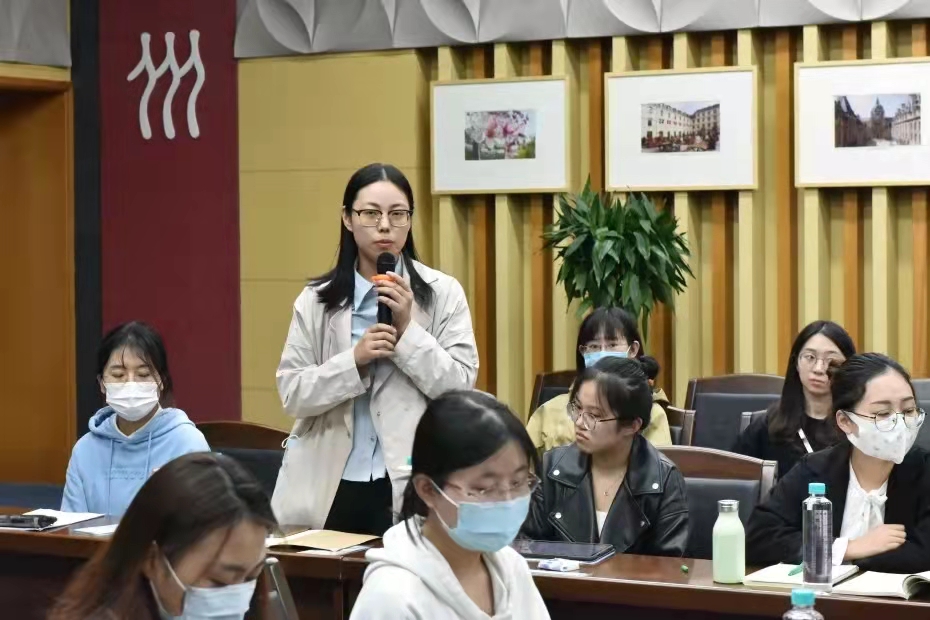 陈默教授代表任课教师发言。她带领同学们思考“我将往何处去”、“我将成为谁”,探讨“谁是聪明的人”、“谁是强大的人”、“谁是富有的人”,希望同学们每一天都能努力工作、开心生活。