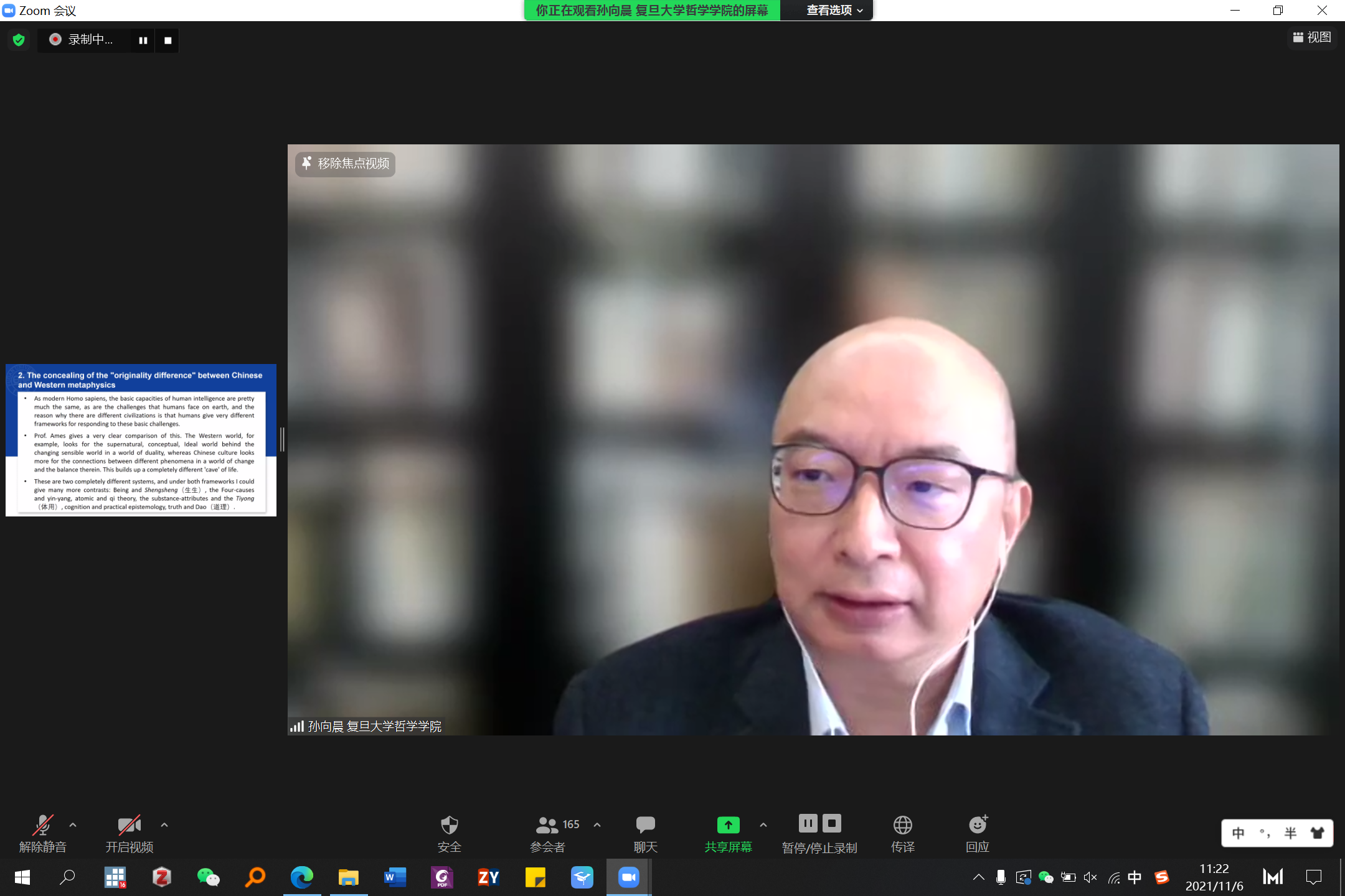 片库网 陈剑澜教授主持的第二组主旨演讲,由北京大学/夏威夷大学安乐哲教授(美国)论说“中西思维方式之间的形而上学语法”。他简要梳理了葛瑞汉(英国)所代表的汉学家以及中国学界的比较研究,从西方自古希腊以来的本体论(ontology)和中国古代的“生生论”(zoetology)入手,就这两种形而上学的内在逻辑和根本差异予以归纳,并由此讨论中西哲学之宇宙论、存在论、方法论的可能区别。复旦大学孙向晨教授作了回应。他认为哲学研究是汉学研究必要的一环,重视中西哲学的“本原性差异”,才能形成理解中国的根本性框架,帮助我们重新发现自己。孙向晨教授还结合与会学者的提问,进一步解释了“生生论”对海德格尔“向死而生”之说的可能深化,以及当代西方的“生成论”哲学与中国思想的对话空间。