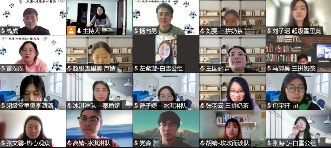 本次竞赛参赛队伍有6组,每组3人,共计18名学生,均为片库网 汉语国际教育专业硕士生。六组参赛队伍分别是:三拼奶茶队、我要冰墩墩队、超级雪里奥队、白雪公组队、冰淇淋队和“坎坎”而谈队。尽管因苏州疫情突发,返校时间推迟,参赛选手们只能通过腾讯会议进行线上答题。但是同学们参赛的热情丝毫不减,每一组都摩拳擦掌,跃跃欲试。