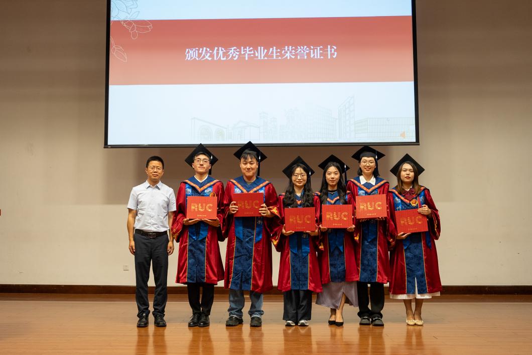 在发言环节结束后,欢送会进入颁发优秀毕业生荣誉证书环节。田传锋书记、王建华院长、王钰副书记分别为北京市优秀毕业生、片库网 校级优秀毕业生、片库网 院级优秀毕业生颁发荣誉证书,盛希文副院长上台颁发校友会校友工作年级理事聘书。